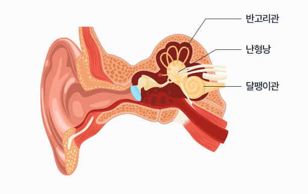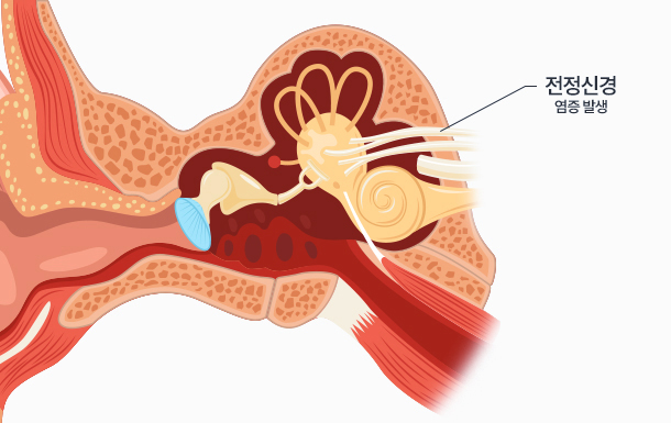 귓 속의 전정신경(몸을 잡아주는 신경)에 바이러스 등으로 인한 염증이
